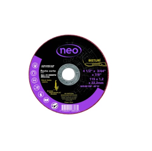 DISCO DE CORTE INOX 115 X 1;2 X 22;2 NEO